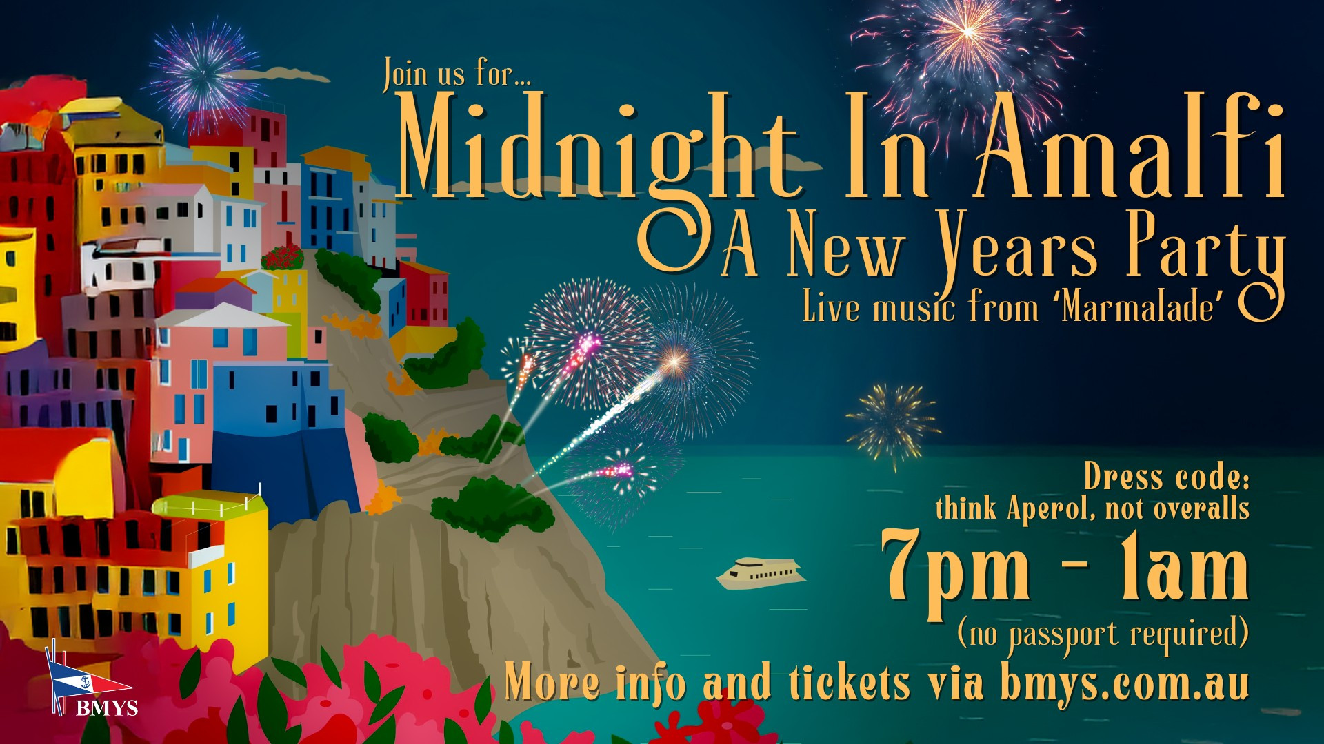 Ring in the New Year with a touch of Italian glamour at Midnight in Amalfi. From 7pm to 1am, enjoy a night of live music by Marmalade, great company and stunning bay views.