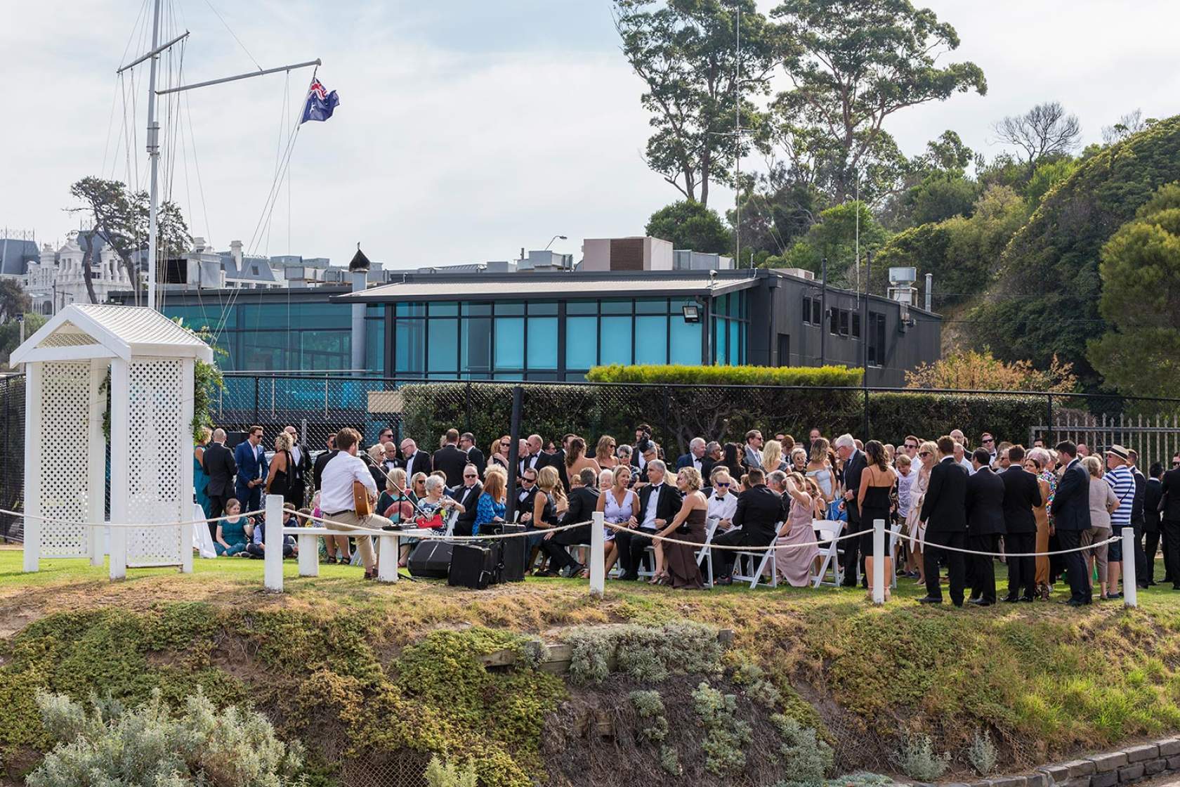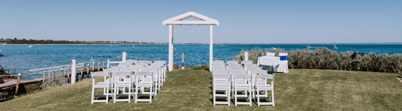 The grounds overlooking the pier offer an idyllic onsite location for conducting wedding ceremonies, made all the more special by the picturesque backdrop of the Mornington Peninsula on the horizon. You can also take advantage of the permanent gabled structure for weddings, located on the grassed area adjacent to the Clubhouse.