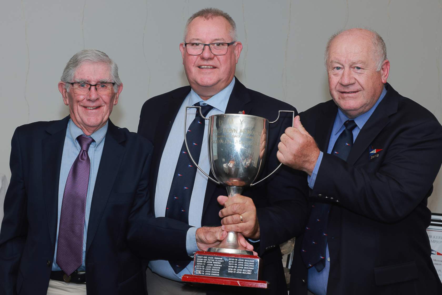 Cover picture - Ian Whiteside being presented with the J.R. Kerr Trophy for 2021 by the Commodore BMYS Les Sabo.