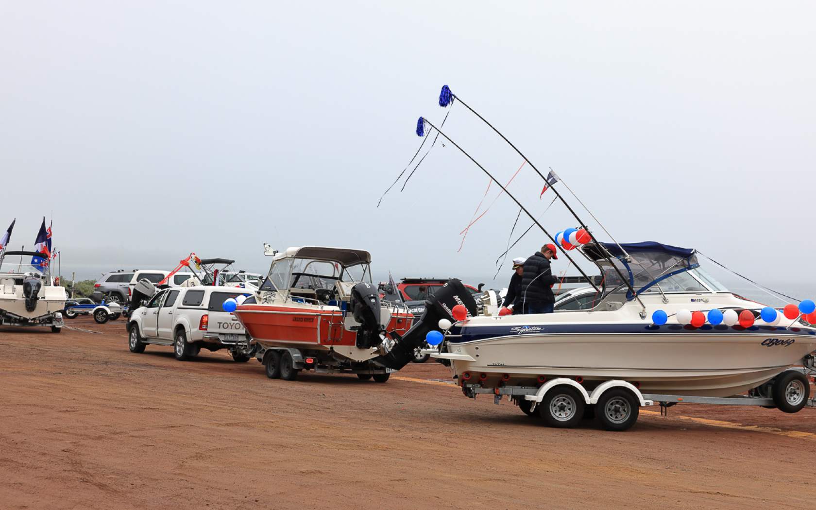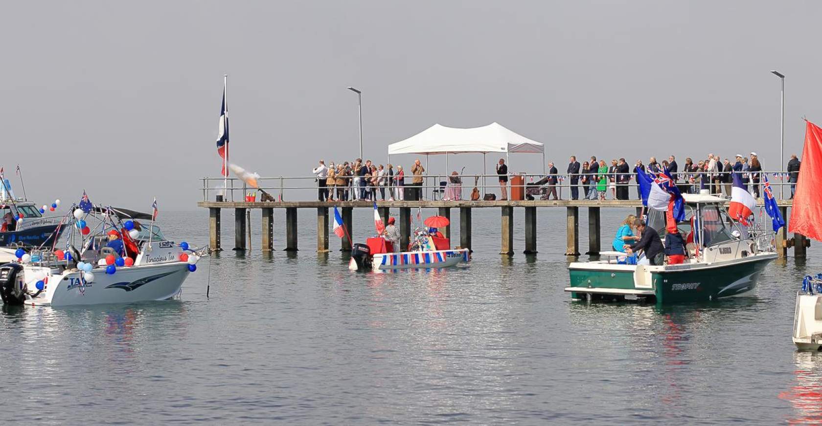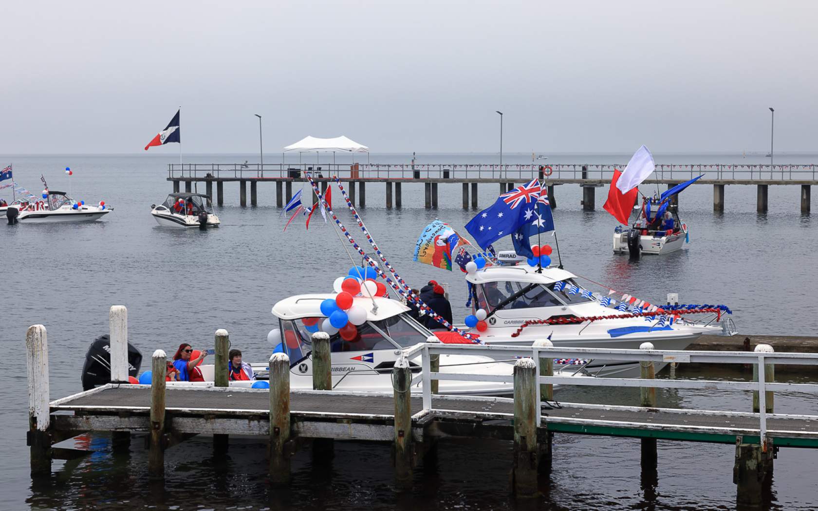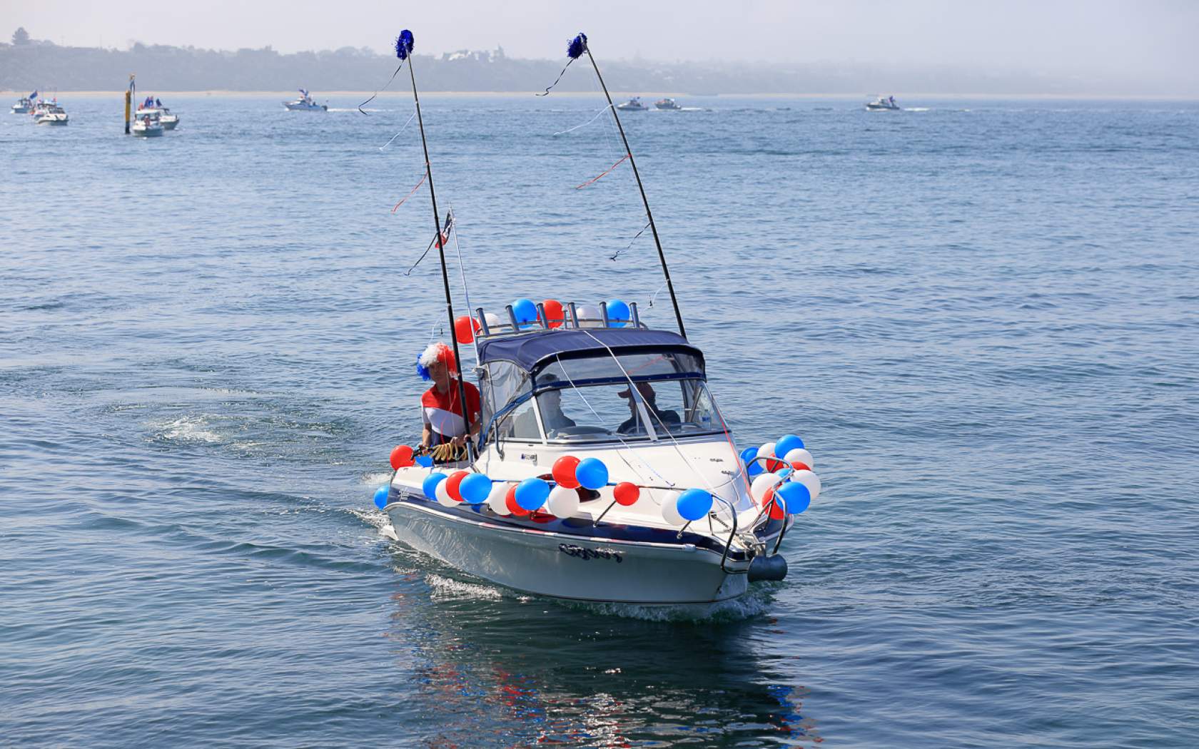 The boating fleet led by Past Commodore Les Sabo did a lap of Beaumaris Bay and sailed past the jetty being cheered on by the assembled crowd.