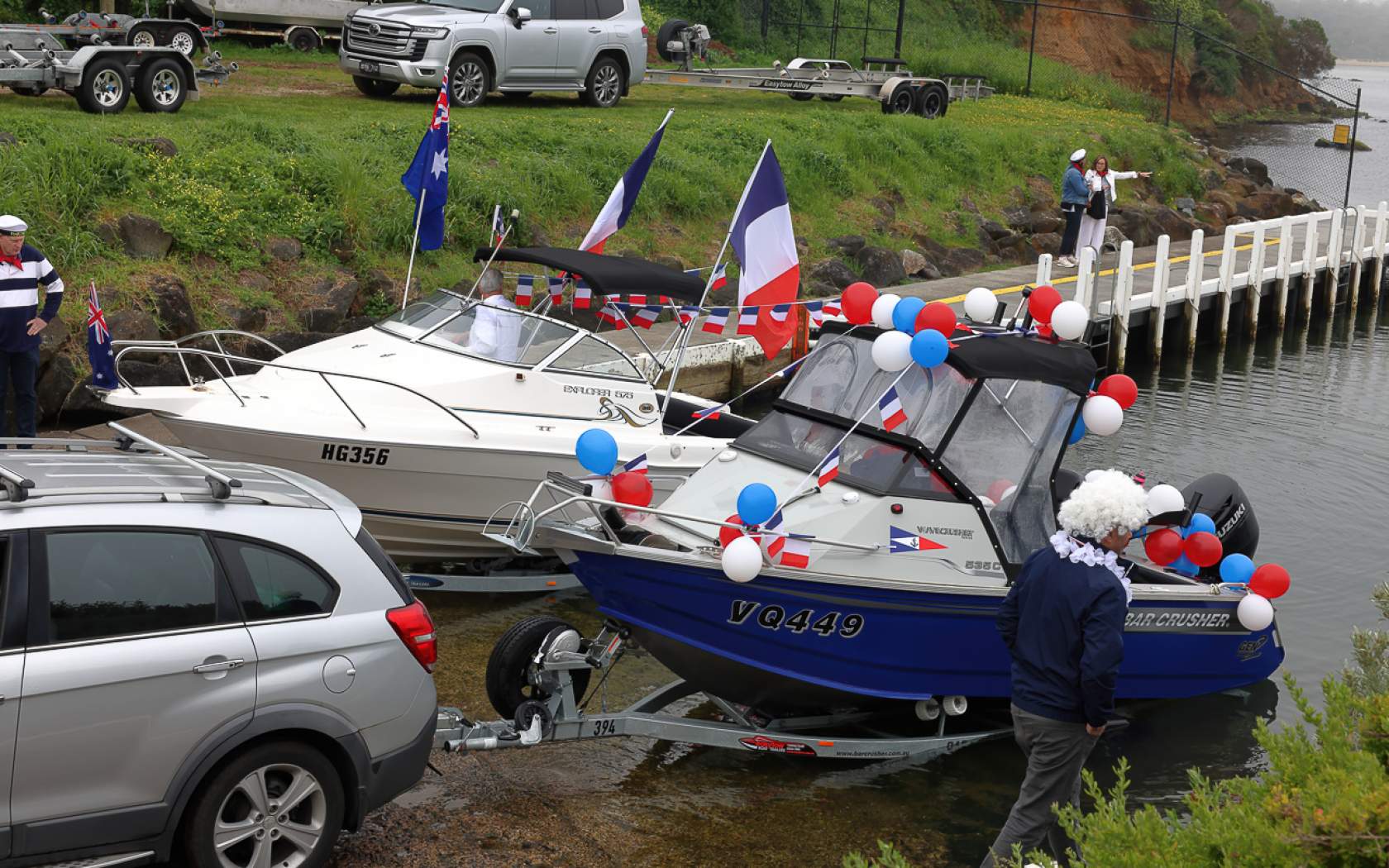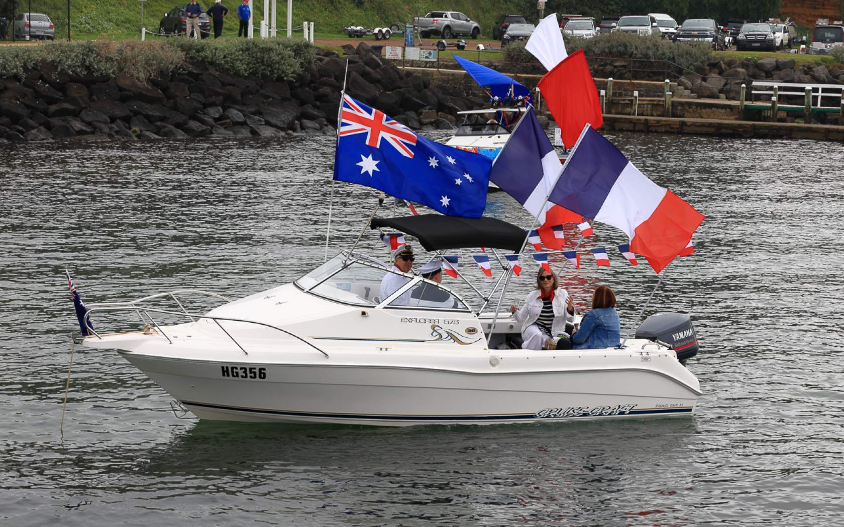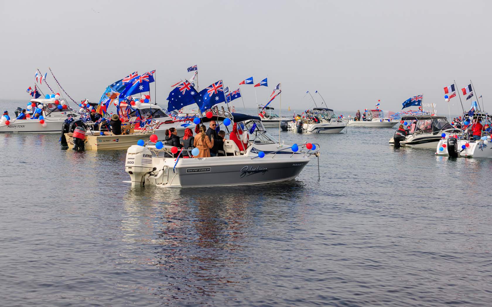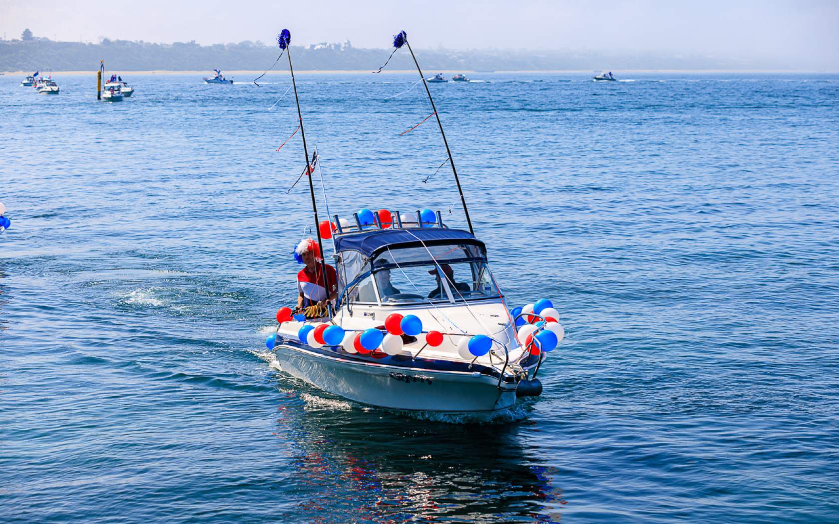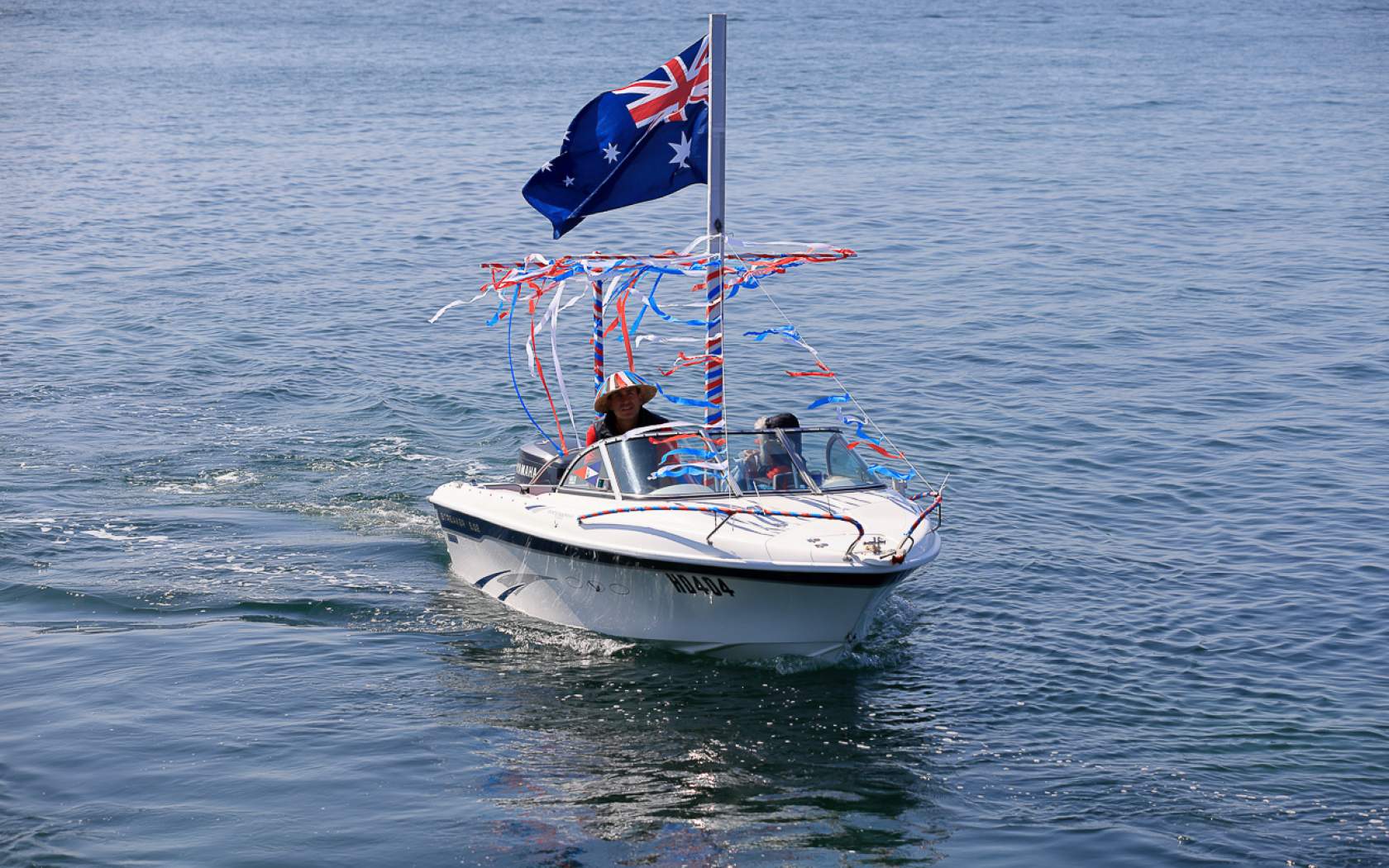 The boating fleet led by Past Commodore Les Sabo did a lap of Beaumaris Bay and sailed past the jetty being cheered on by the assembled crowd.