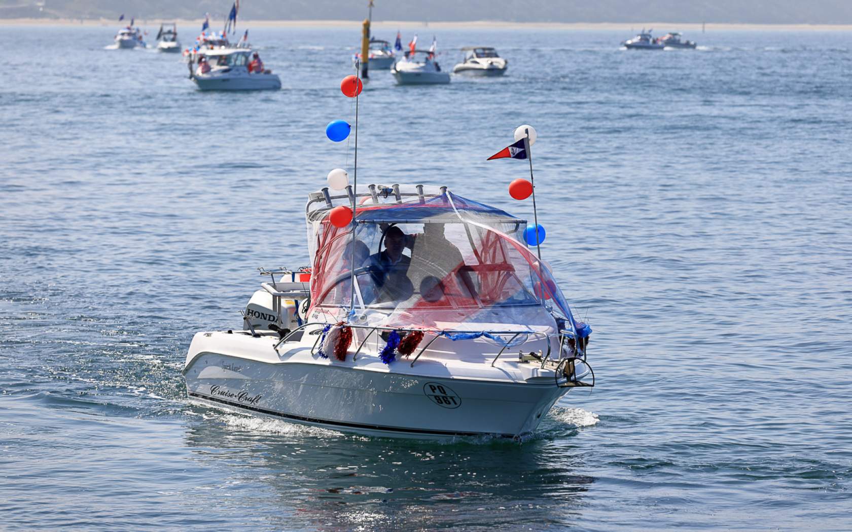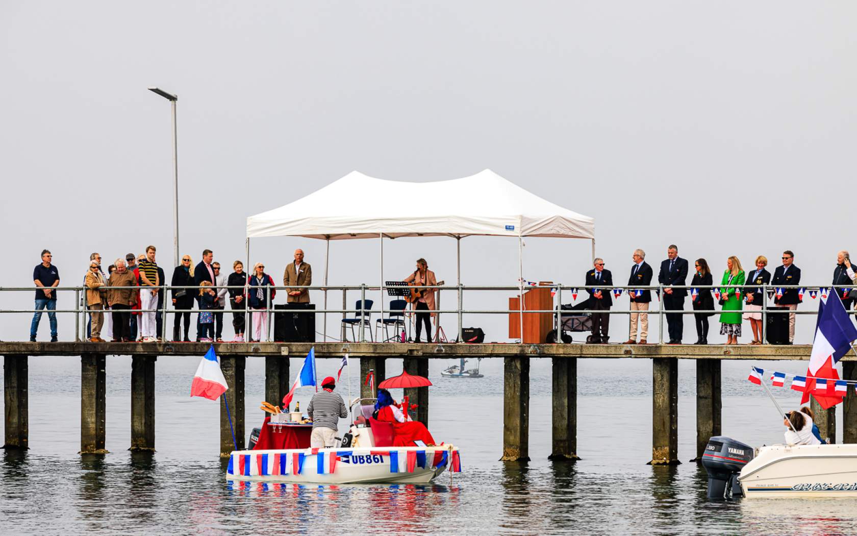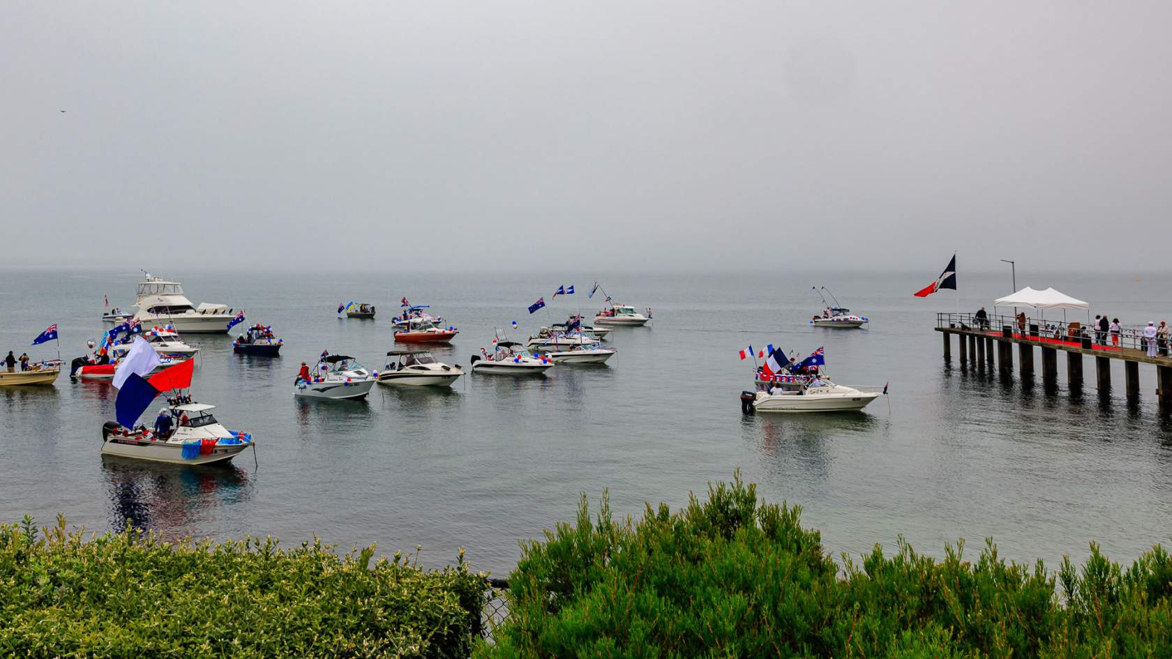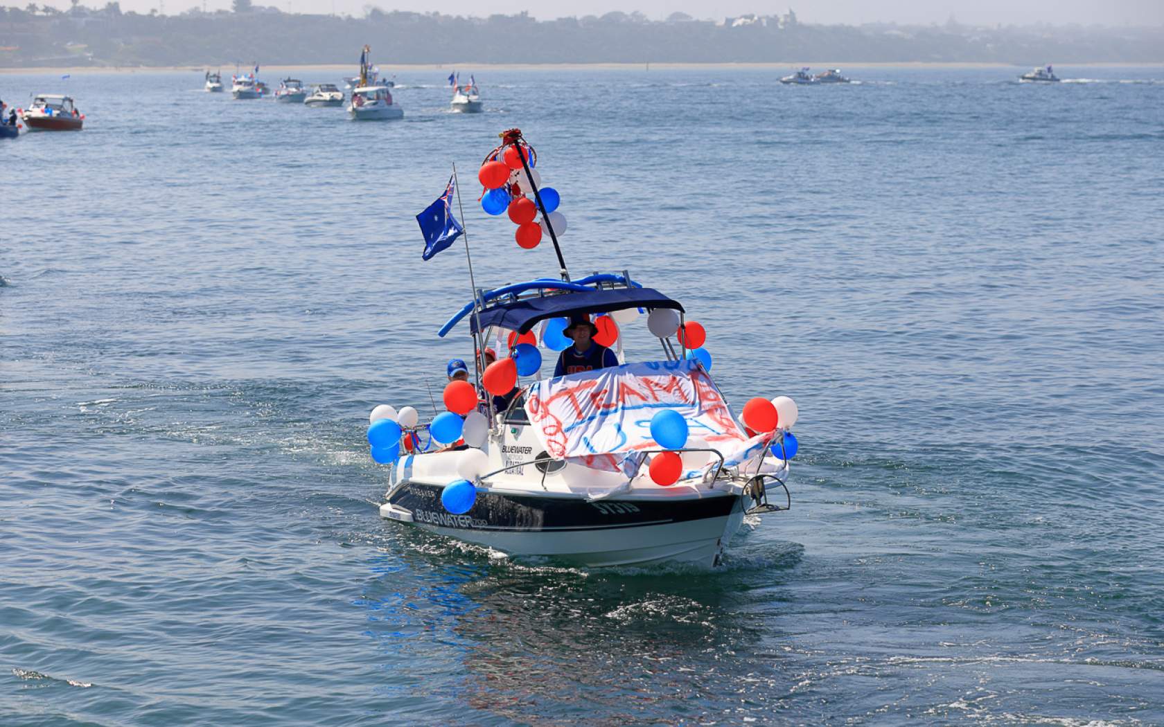 The boating fleet led by Past Commodore Les Sabo did a lap of Beaumaris Bay and sailed past the jetty being cheered on by the assembled crowd.