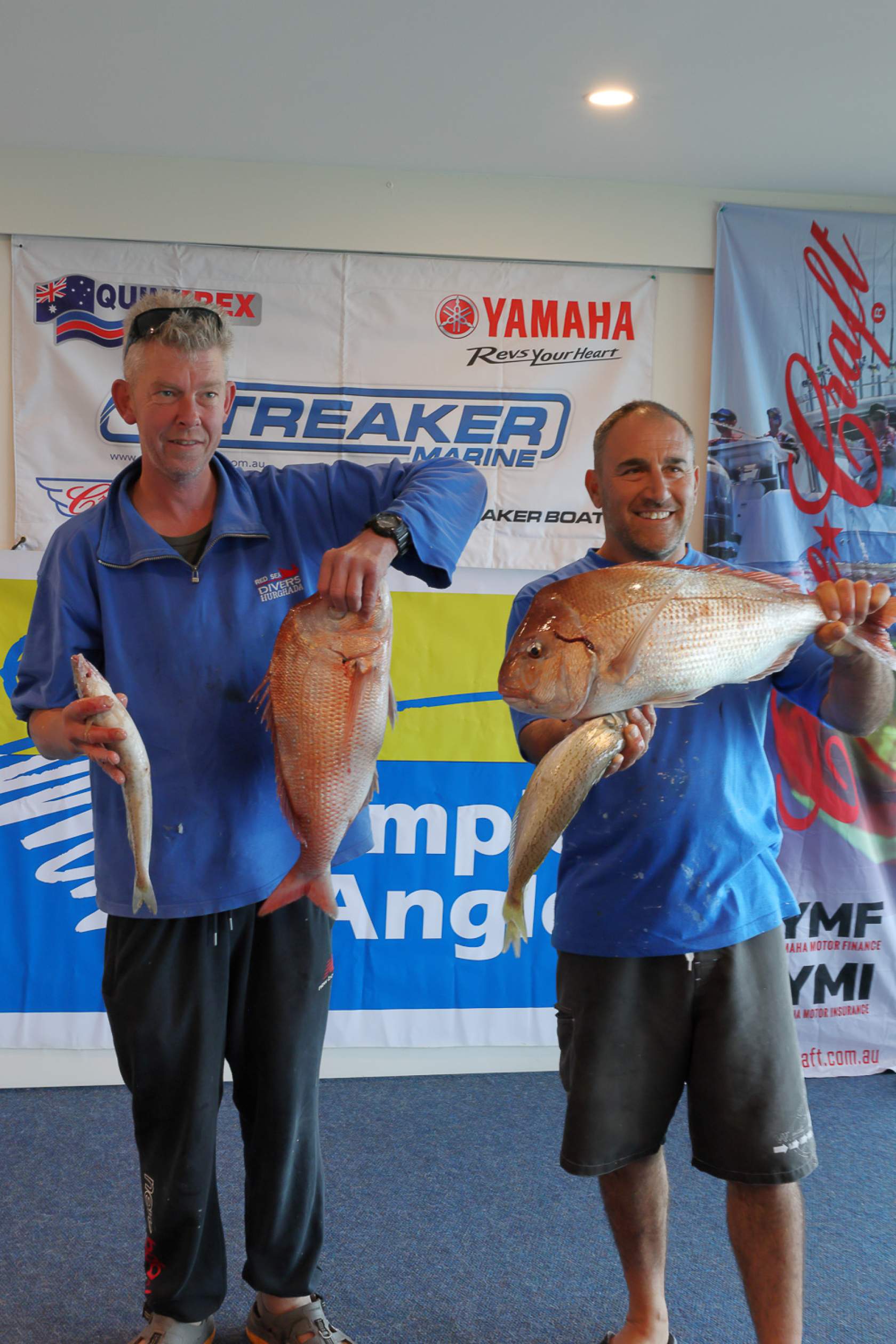 Congratulations to Eddie Zahra and Mark Hyland who returned to base with a splendid catch of snapper, large whiting and other species which caused plenty of shock and awe around the weigh-in station. Apparently, Mark did a great job putting Eddie onto his best fishing marks! Unsurprisingly both Eddie and Mark were major prize winners on the day.